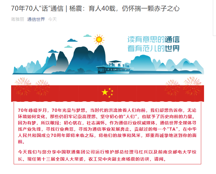 【通信世界】楊震:育人40載,仍懷揣一顆赤子之心