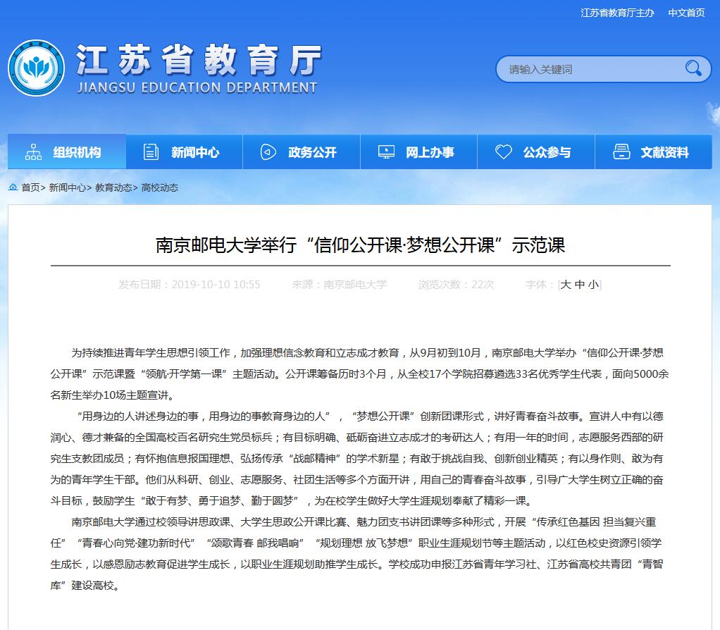 【江蘇教育】南京郵電大學舉行“信仰公開課·夢想公開課”示范課