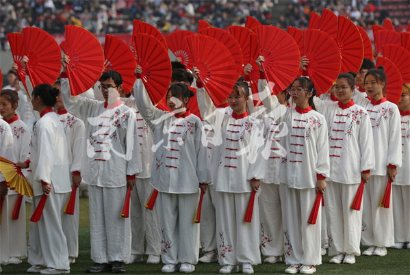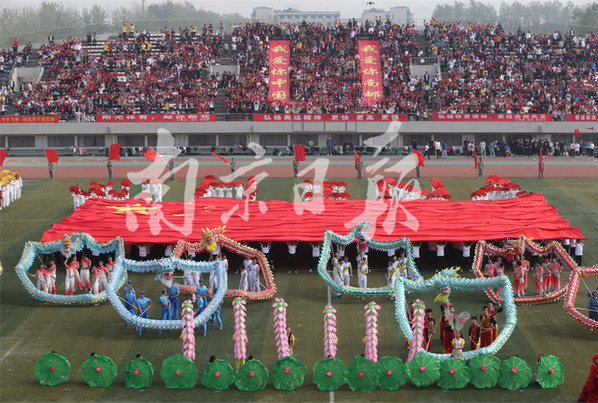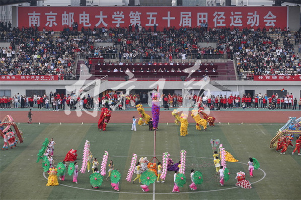 10月25日,南京郵電大學舉行第五十屆田徑運動會,來自各個院系的大學生們整齊亮相,配以不同的服飾輪番展示舞龍舞獅、啦啦操、團體操等節(jié)目,展示大學生青春風采,現(xiàn)場涌動濃濃的愛國情。本報通訊員 張前 本報記者 徐琦 攝