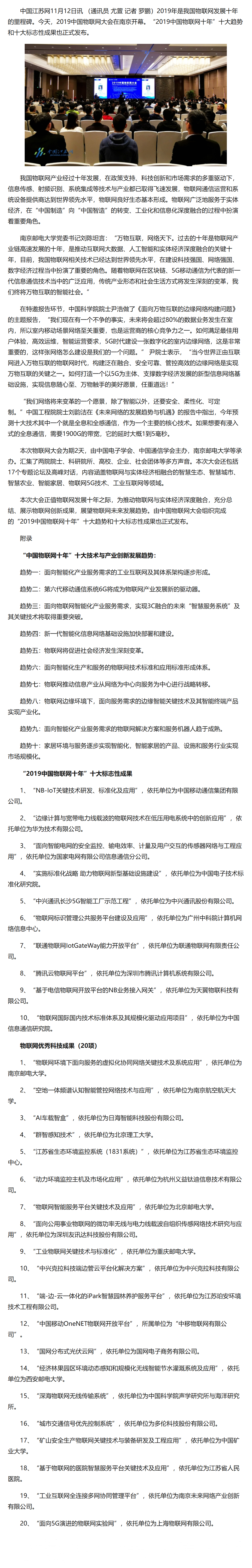 【中國江蘇網】“中國物聯網十年”十大發展趨勢和標志性成果在寧發布