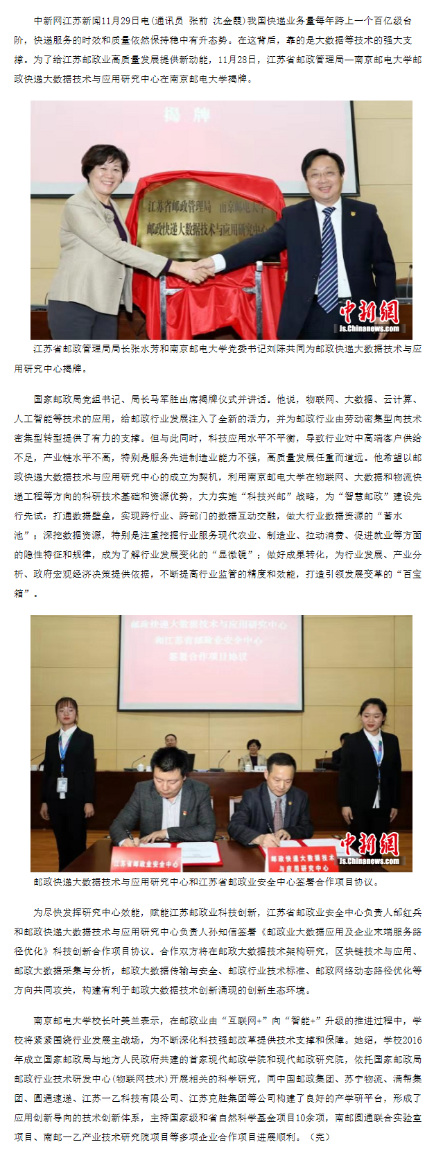 【中國(guó)新聞網(wǎng)】郵政快遞大數(shù)據(jù)技術(shù)與應(yīng)用研究中心在南郵大揭牌