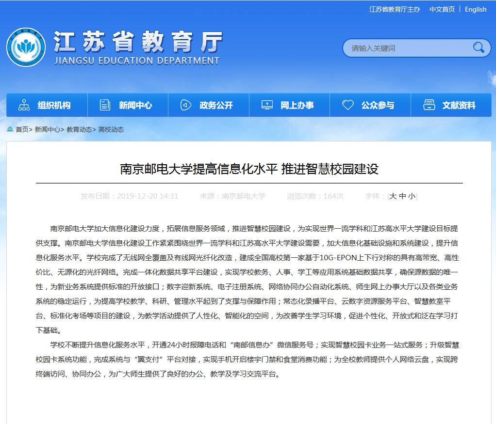 【江蘇教育】南京郵電大學(xué)提高信息化水平 推進(jìn)智慧校園建設(shè)