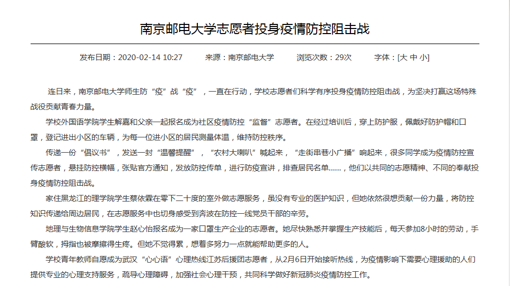 【江蘇教育】南京郵電大學志愿者投身疫情防控阻擊戰