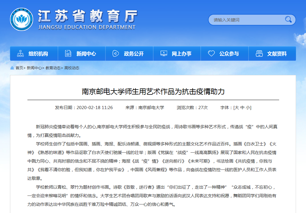 【江蘇教育】南京郵電大學師生用藝術作品為抗擊疫情助力