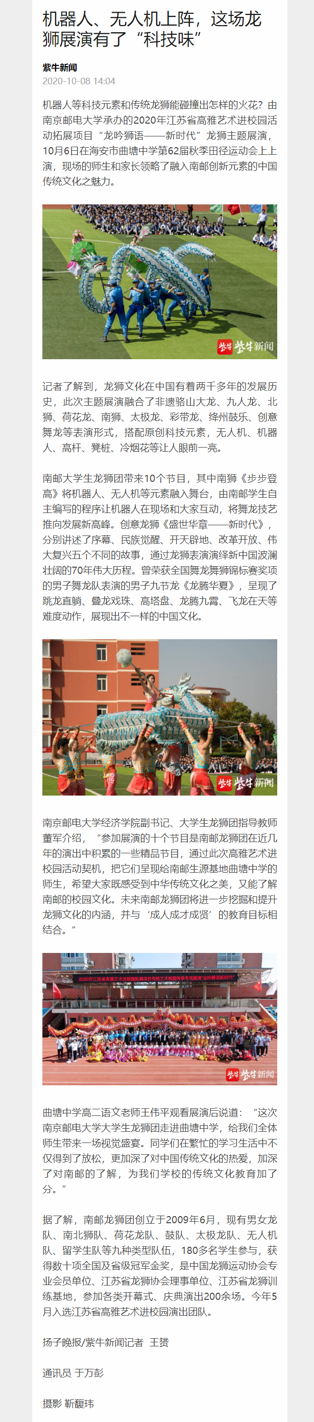 【揚子晚報客戶端】機器人、無人機上陣,這場龍獅展演有了“科技味”