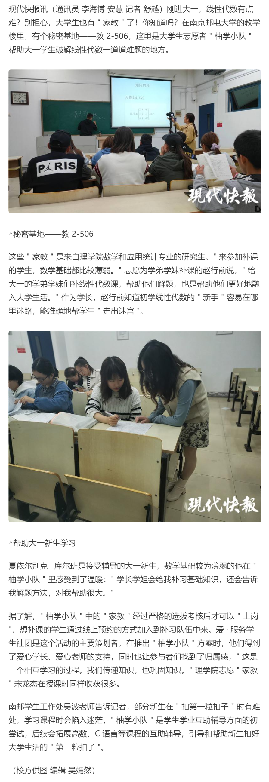 【現(xiàn)代快報全媒體】線性代數(shù)搞不定?別急,大學生也有“家教”了!