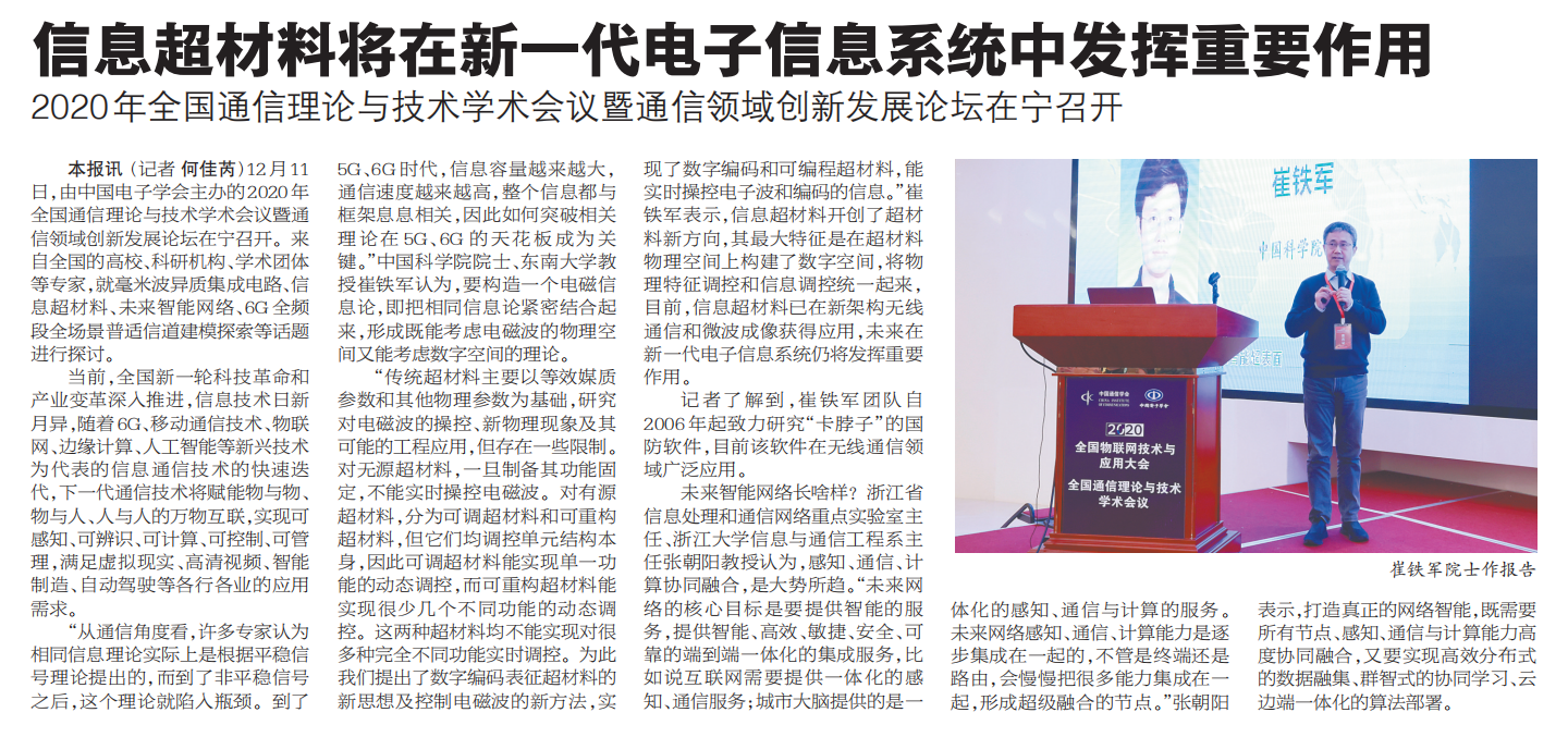 【江蘇科技報】信息超材料將在新一代電子信息系統中發揮重要作用