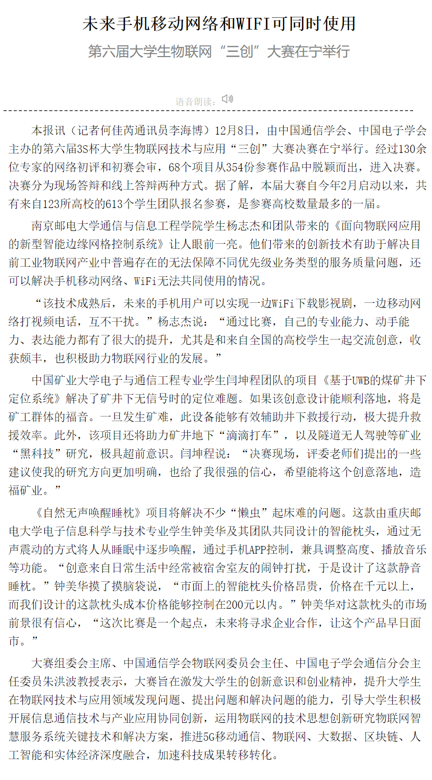 【江蘇科技報】未來手機移動網絡和WIFI可同時使用