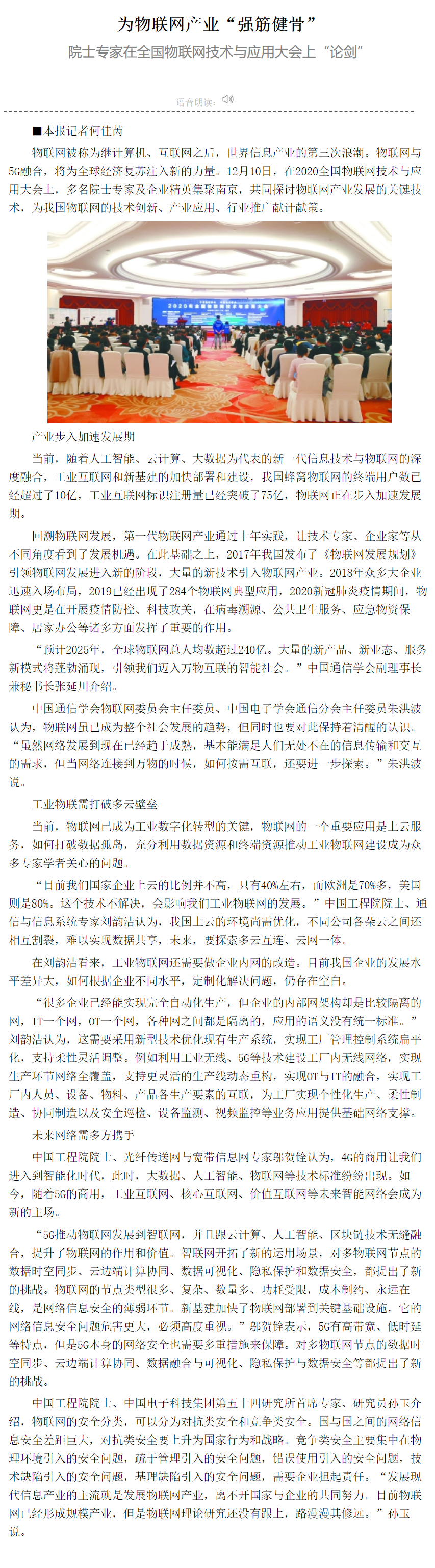 【江蘇科技報】為物聯網產業“強筋健骨”