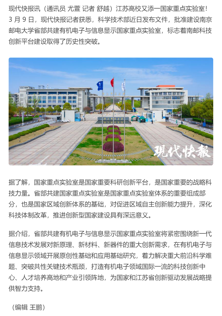 【現代快報】省部共建!南郵這個國家重點實驗室正式獲批建設