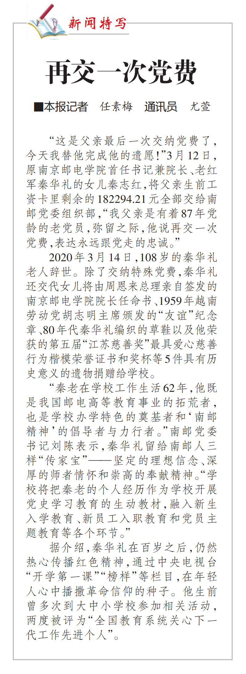 【江蘇教育報】再交一次黨費