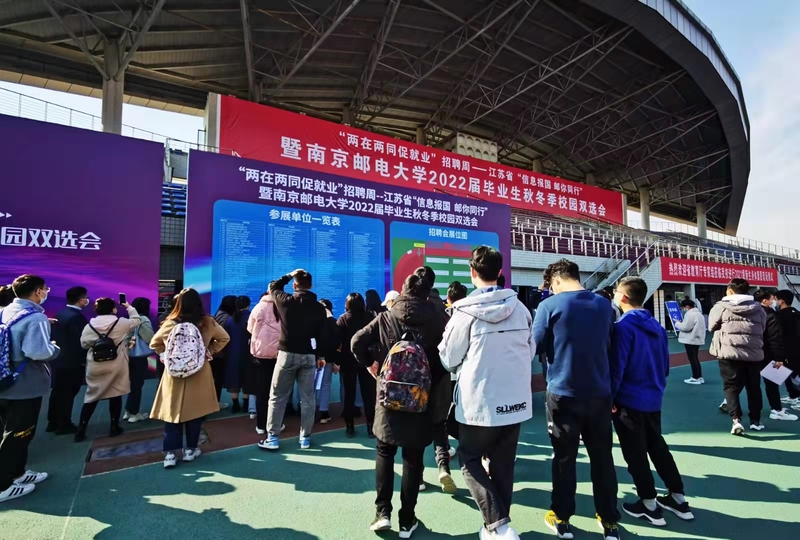 12月4日下午,由江蘇省高校招生就業(yè)指導(dǎo)服務(wù)中心主辦、我校承辦的“兩在兩同促就業(yè)”招聘周——江蘇省“信息報國 郵你同行”暨南京郵電大學2022屆畢業(yè)生秋冬季校園雙選會在我校仙林校區(qū)舉辦。江蘇省高校招生就業(yè)指導(dǎo)服務(wù)中心副主任黃煒、信息服務(wù)部部長王華,棲霞區(qū)衛(wèi)健委疫情防控專班戴永平,我校黨委常委、副校長荊晅到雙選會現(xiàn)場指導(dǎo)工作。學校相關(guān)職能部門、各學院相關(guān)負責同志以及全體2022屆畢業(yè)班輔導(dǎo)員全程參與雙選會活動。