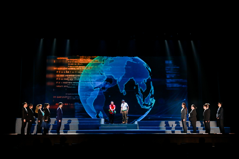 表演結束,現場很多觀眾熱淚盈眶,報以經久不息的掌聲,同學們舉起手中的“應援”牌,齊聲喊出“信達天下,自強不息”,感謝師生演員們帶來的震撼人心的精彩演出。