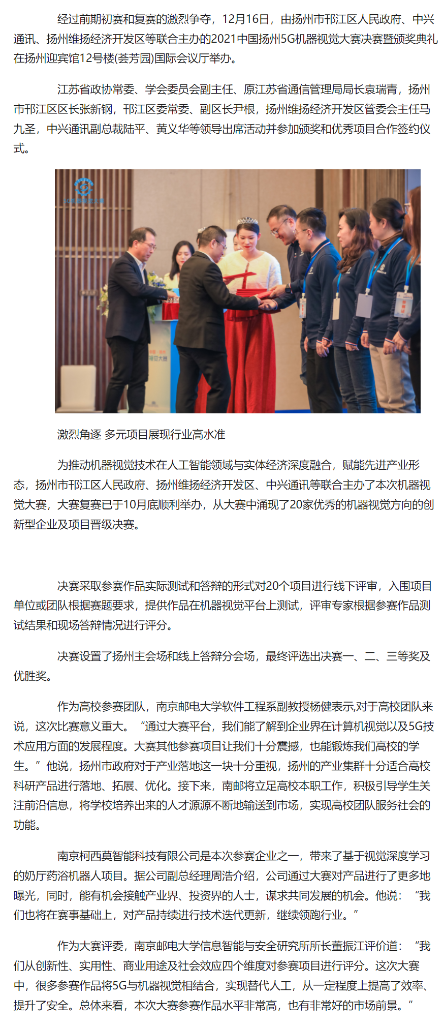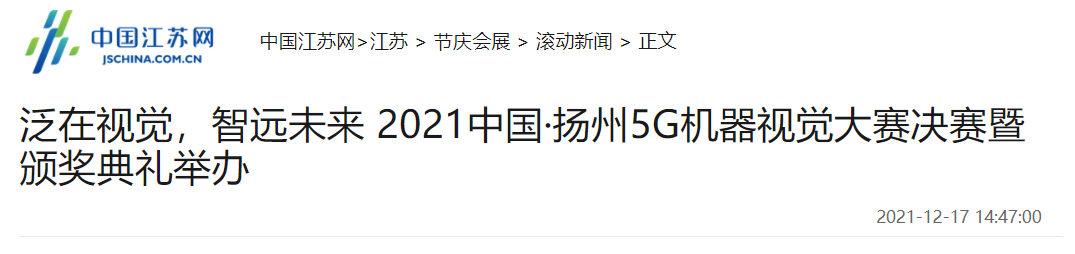 【中國江蘇網(wǎng)】泛在視覺,智遠未來 2021中國·揚州5G機器視覺大賽決賽暨頒獎典禮舉辦