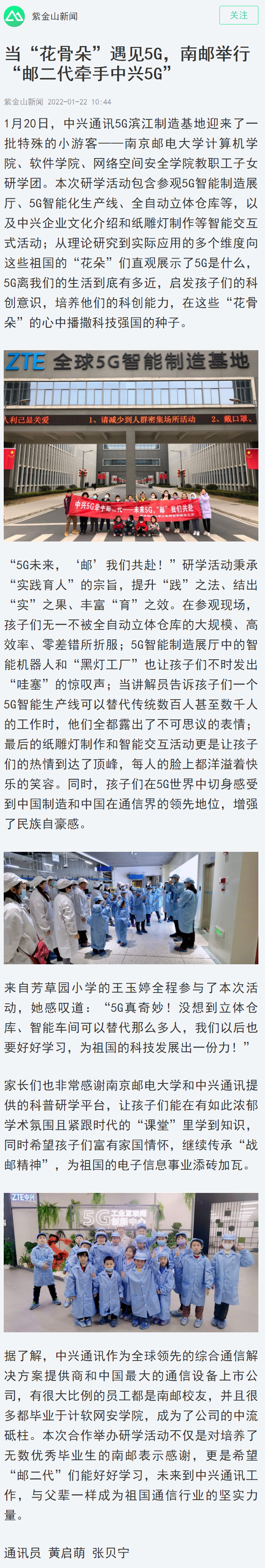 【南京日報客戶端】當“花骨朵”遇見5G,南郵舉行“郵二代牽手中興5G”