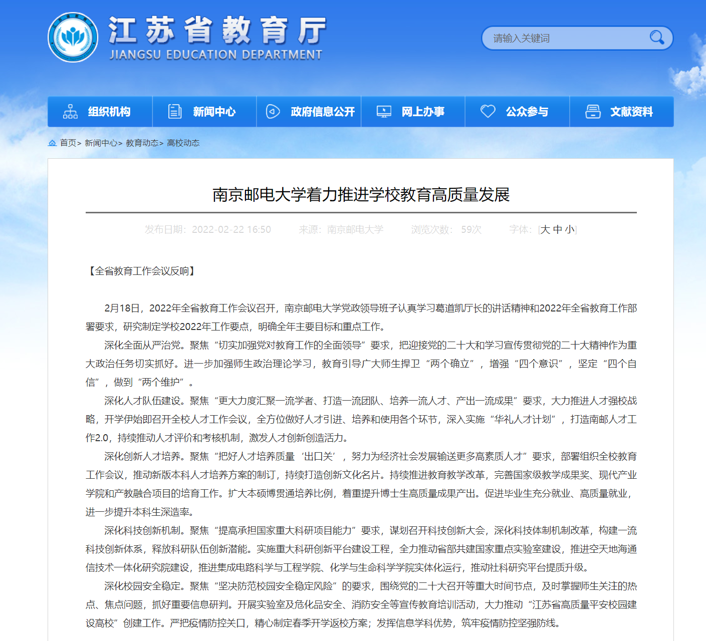 【省教育廳官網】南京郵電大學著力推進學校教育高質量發展