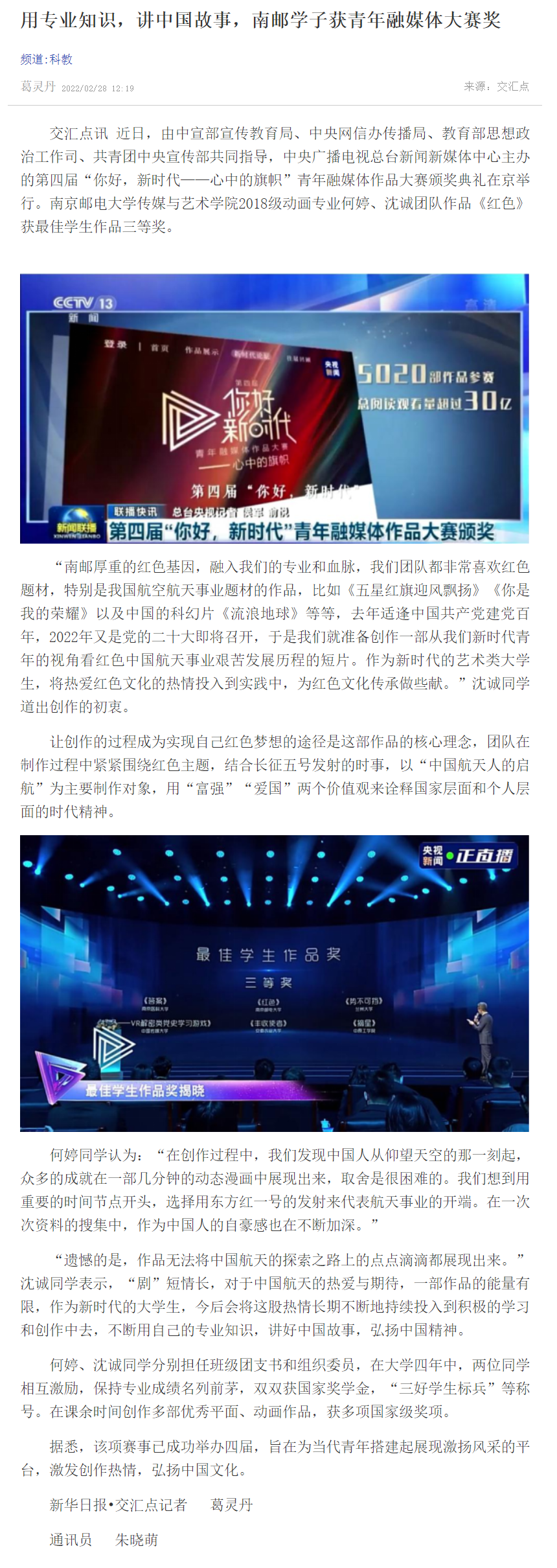 【新華日報客戶端】用專業知識,講中國故事,南郵學子獲青年融媒體大賽獎