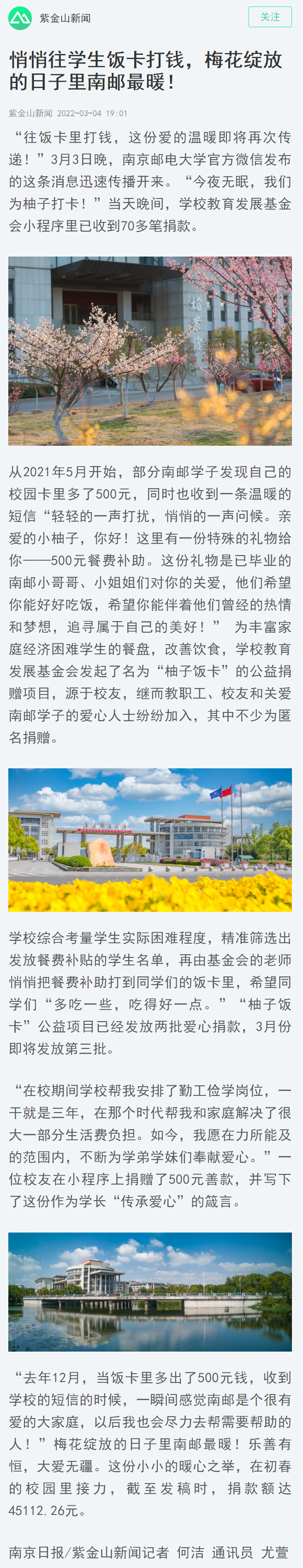 【南京日報客戶端】悄悄往學生飯卡打錢,梅花綻放的日子里南郵最暖!