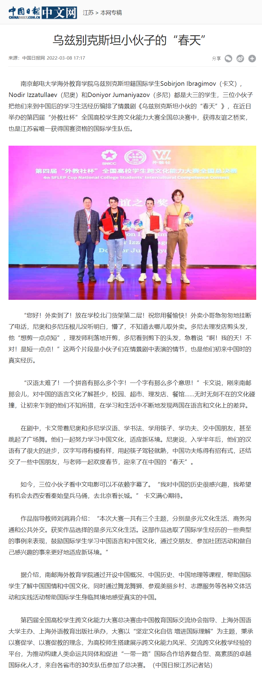 【中國日報網(wǎng)】烏茲別克斯坦小伙子的“春天”
