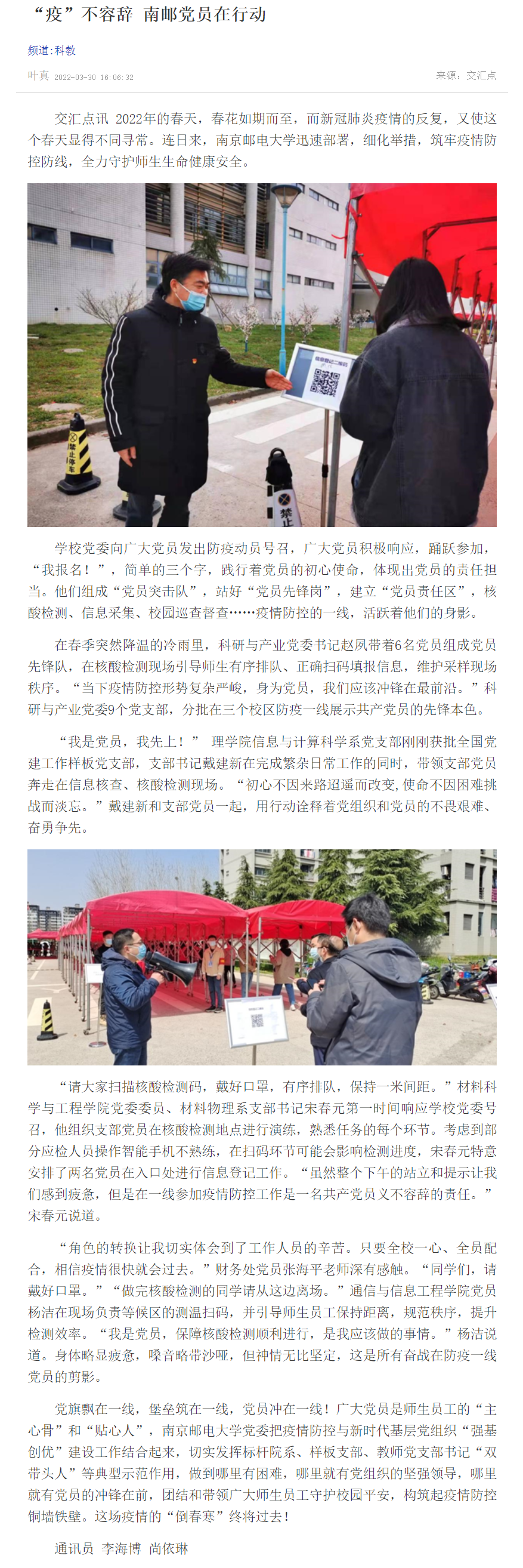 【新華日報客戶端】“疫”不容辭 南郵黨員在行動