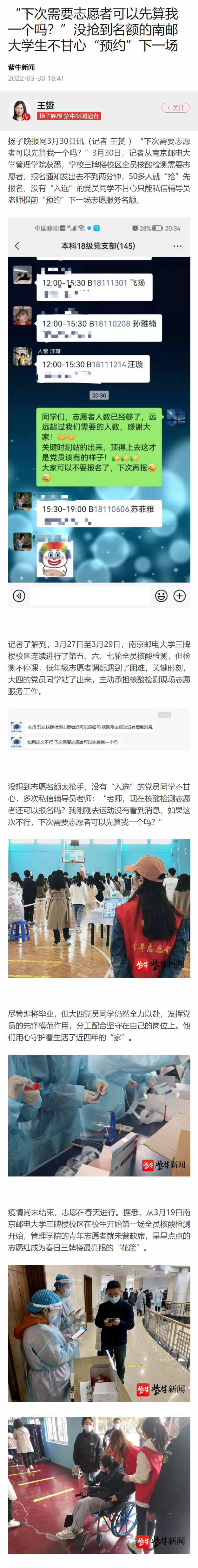 【揚子晚報客戶端】“下次需要志愿者可以先算我一個嗎?”沒搶到名額的南郵大學生不甘心“預約”下一場