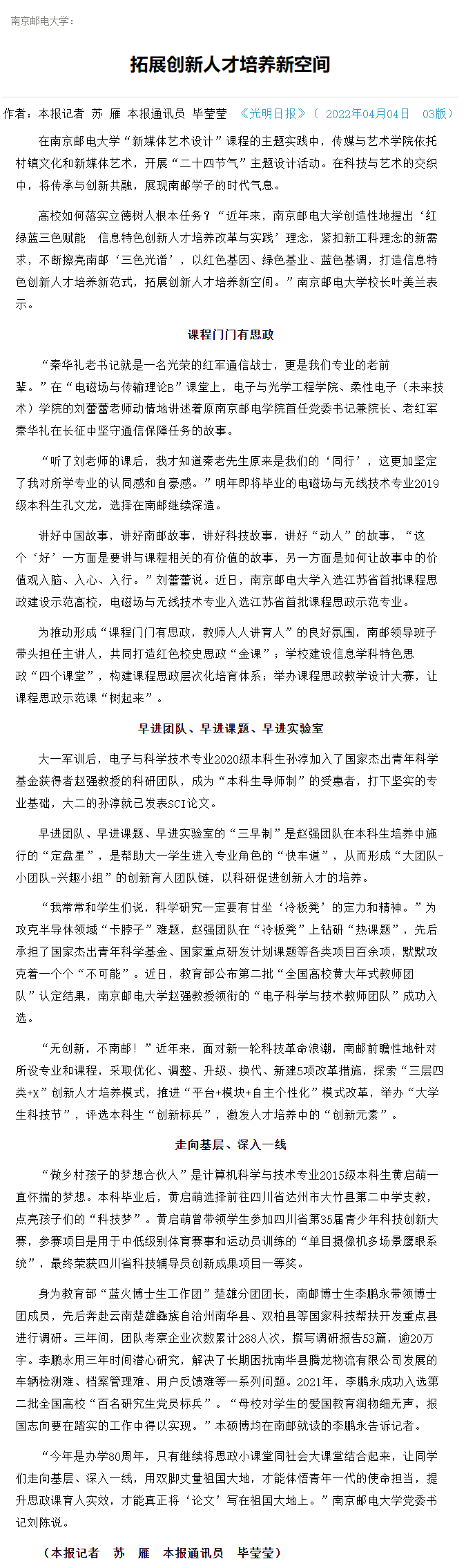 【光明日報】南京郵電大學: 拓展創新人才培養新空間
