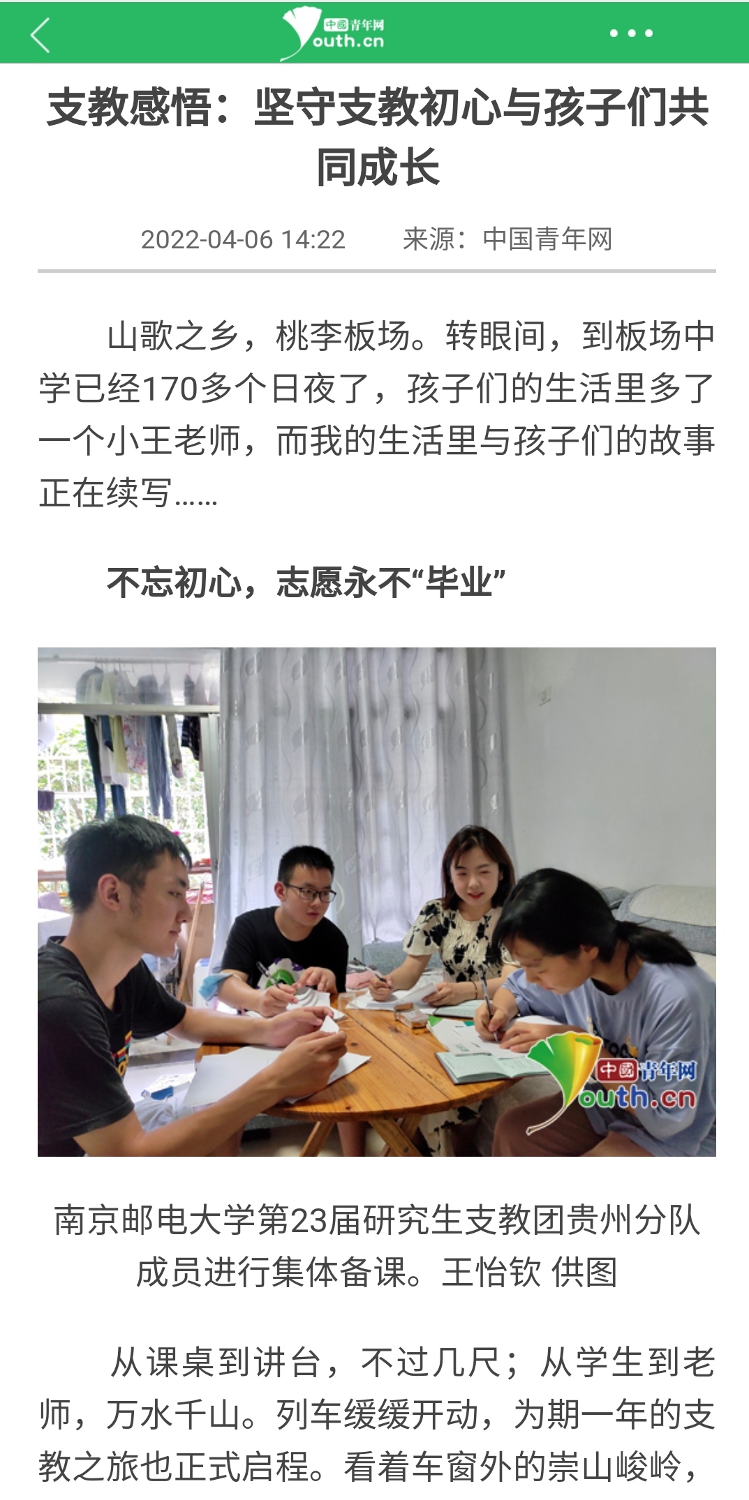 【中國青年網】支教感悟:堅守支教初心與孩子們共同成長