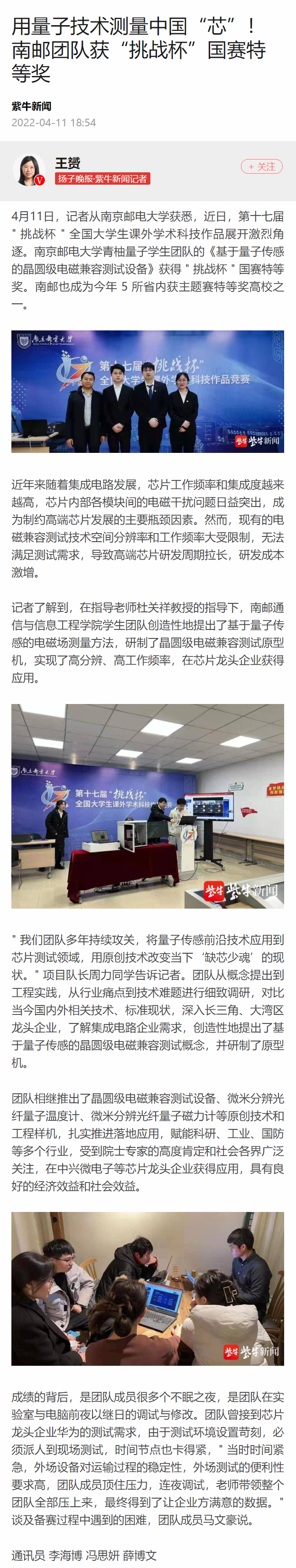 【揚子晚報客戶端】用量子技術測量中國“芯”!南郵團隊獲“挑戰杯”國賽特等獎