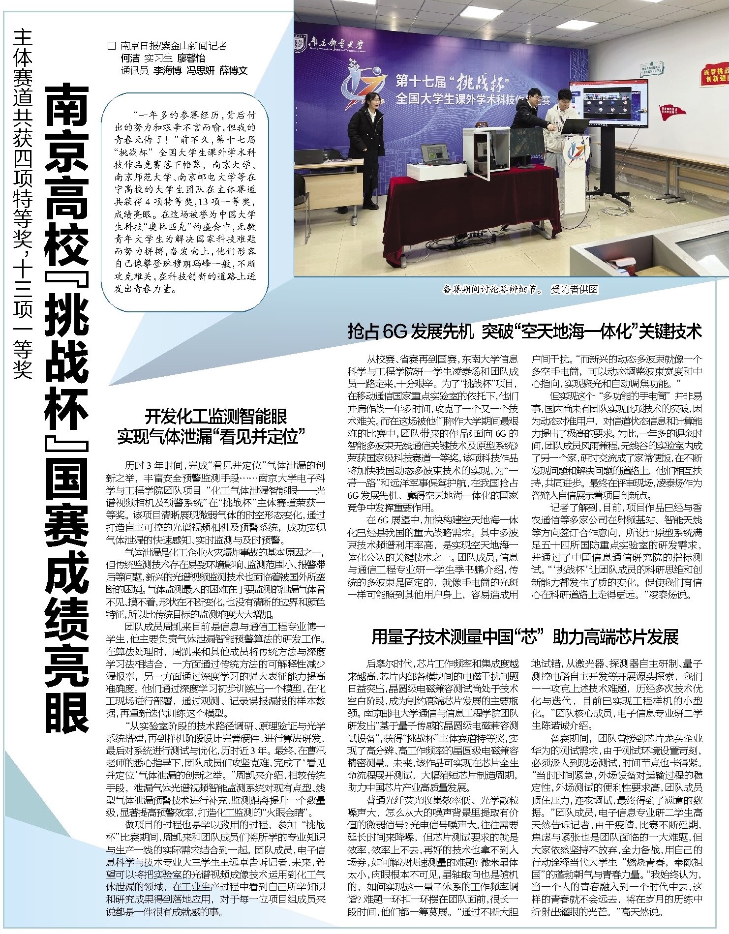 【南京日報】主體賽道共獲四項特等獎,十三項一等獎 南京高校“挑戰杯”國賽成績亮眼