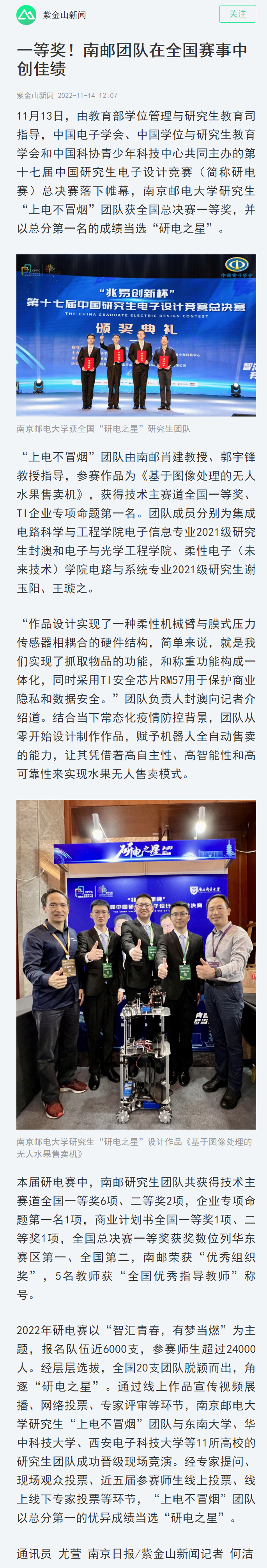 【南京日報客戶端】一等獎!南郵團隊在全國賽事中創佳績