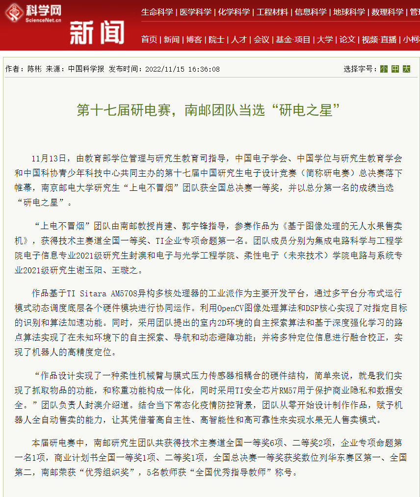 【科學網】第十七屆研電賽,南郵團隊當選“研電之星”