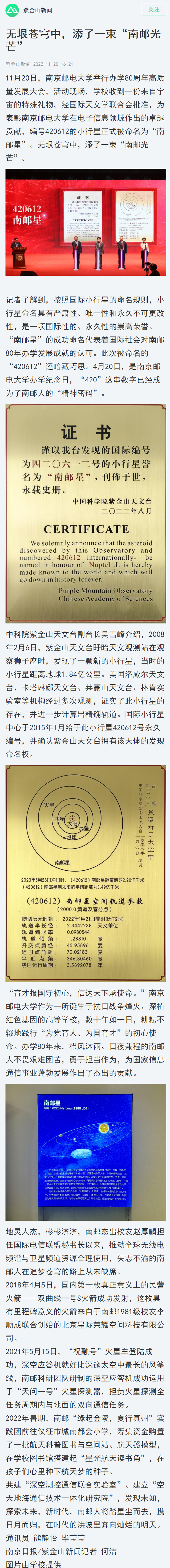 【南京日報客戶端】無垠蒼穹中,添了一束“南郵光芒”