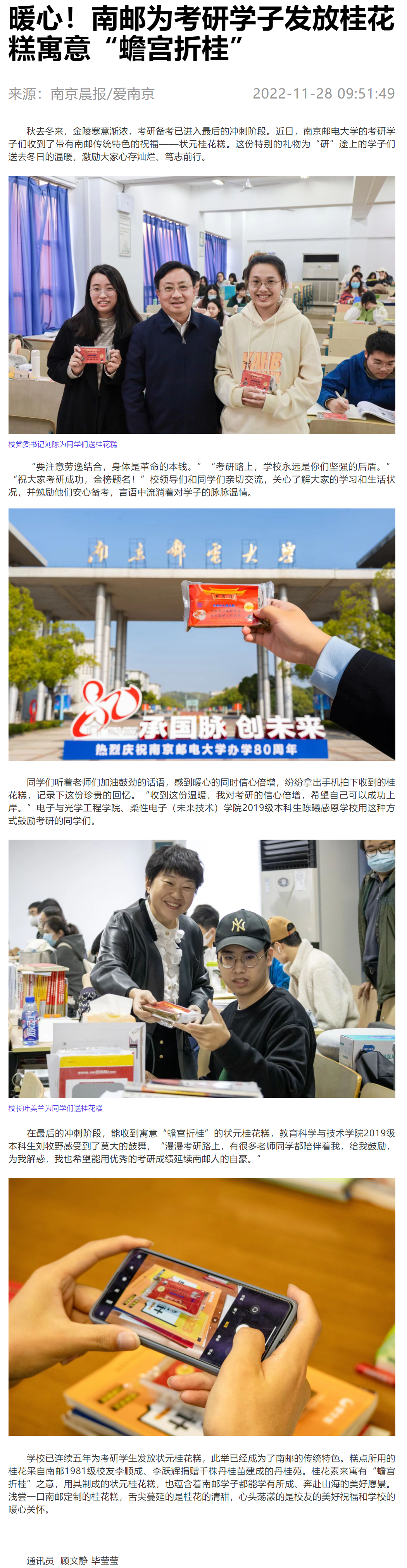 【南京晨報客戶端】暖心!南郵為考研學子發放桂花糕寓意“蟾宮折桂”