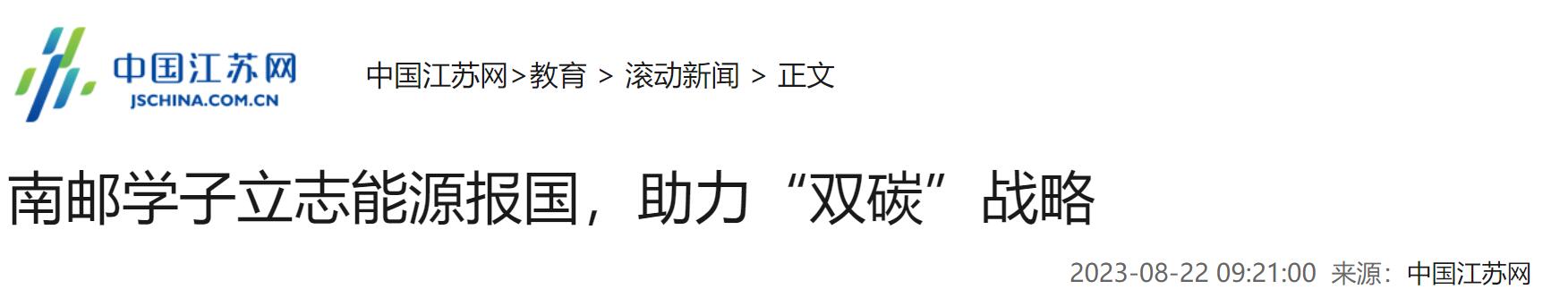 【中國江蘇網】南郵學子立志能源報國,助力“雙碳”戰略