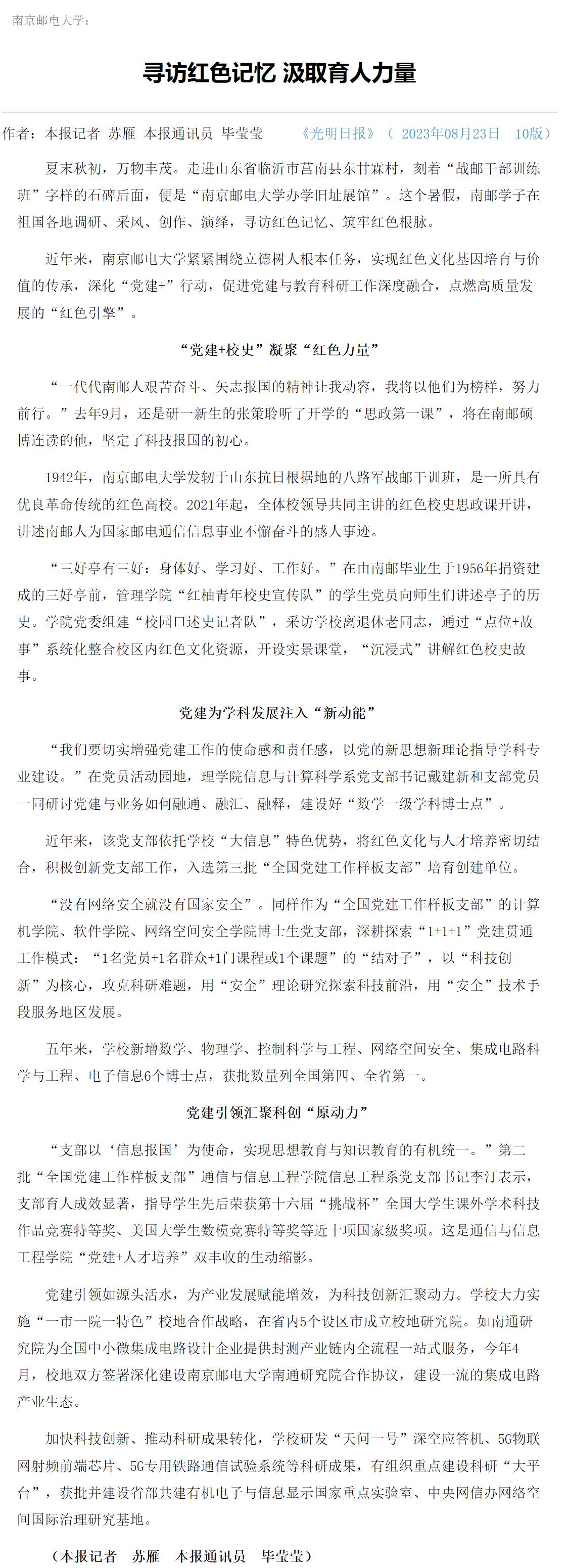 【光明日報】南京郵電大學(xué):尋訪紅色記憶 汲取育人力量