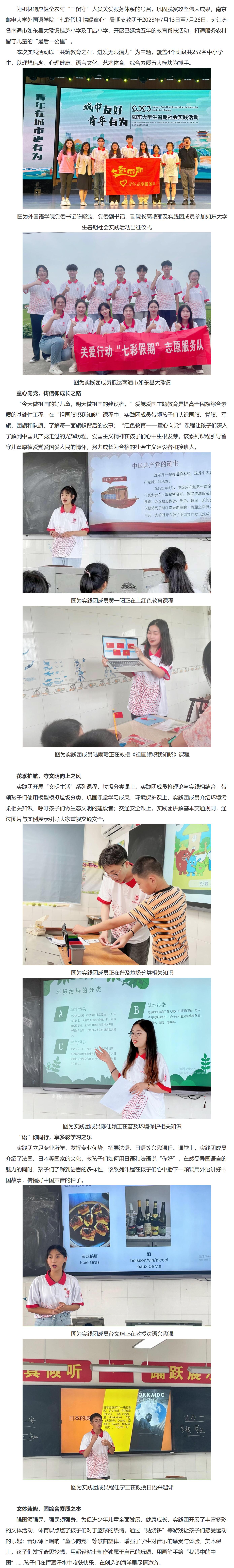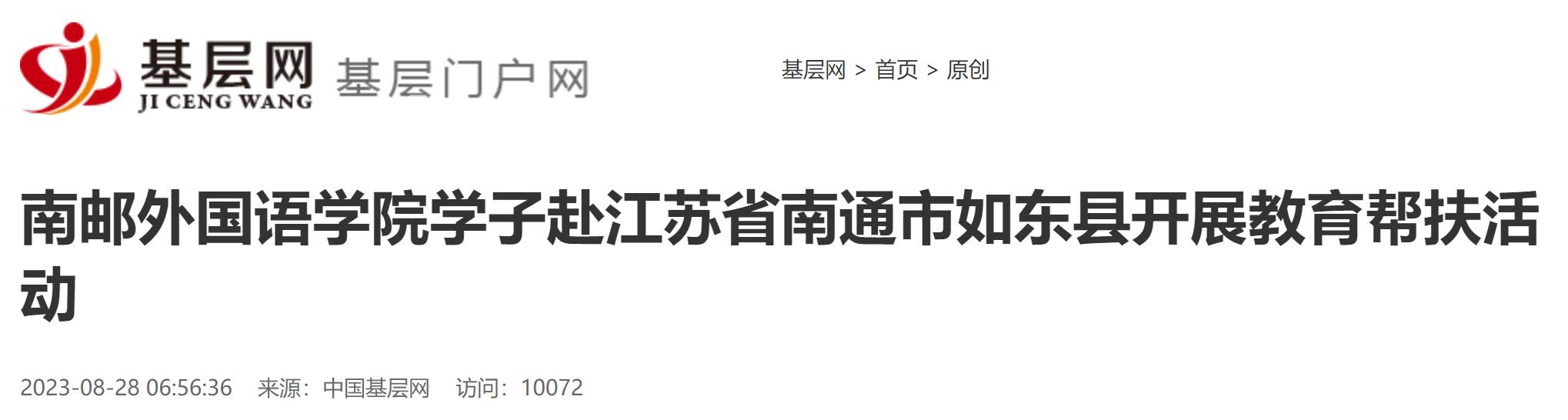 【中國基層網】南郵外國語學院學子赴江蘇省南通市如東縣開展教育幫扶活動