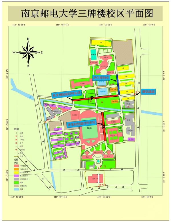2.新生入校:新生憑錄取通知書進(jìn)出校園,隨行親屬由學(xué)生本人帶入校園。東門設(shè)新生專用進(jìn)校通道 1 股。新生報(bào)到車輛僅可從南瑞路東門進(jìn)出。