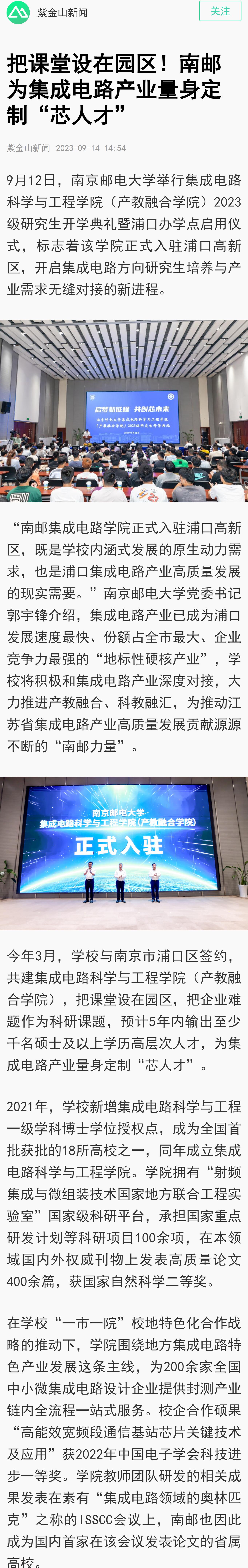 【南京日報客戶端】把課堂設在園區!南郵為集成電路產業量身定制“芯人才”