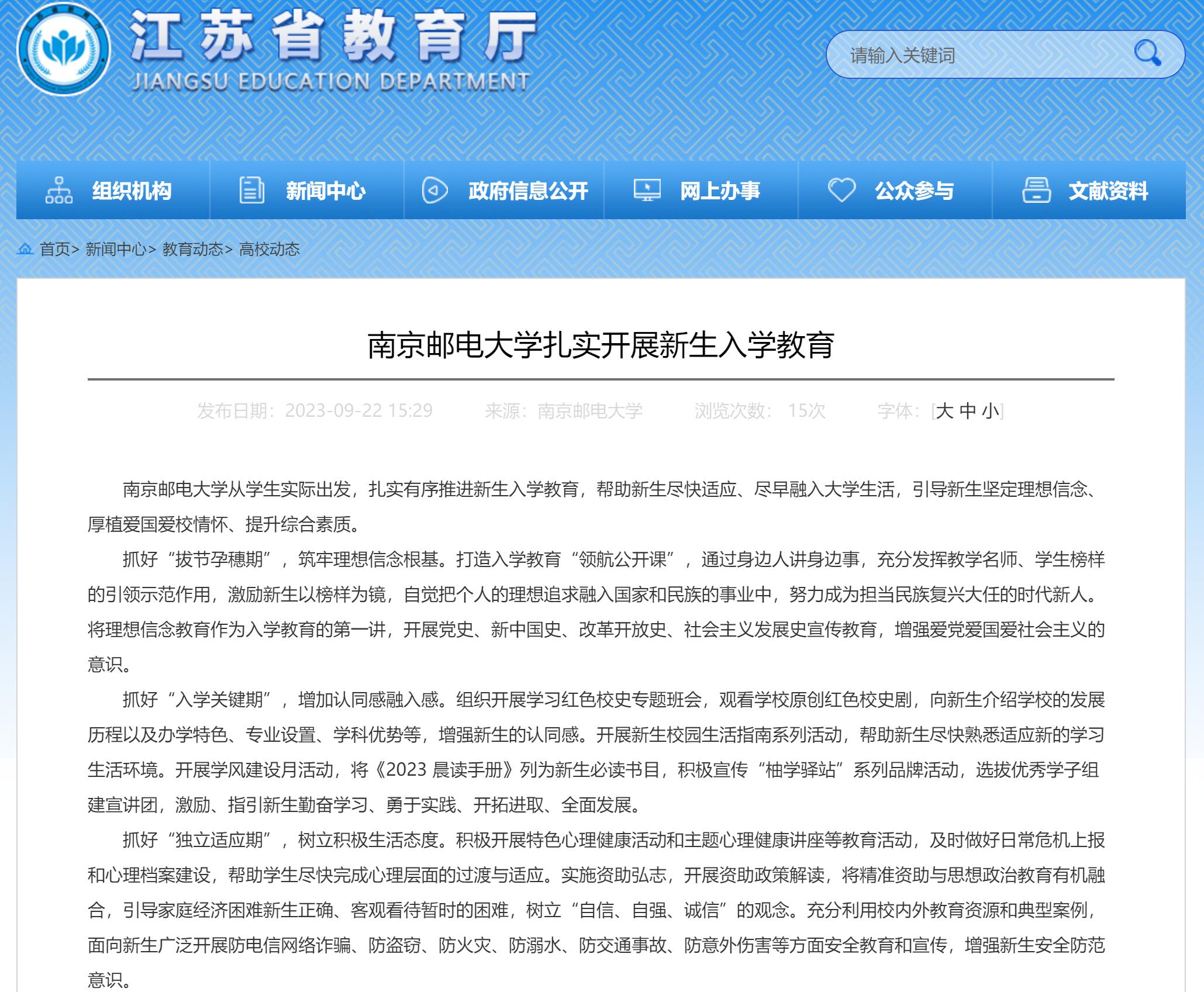 【省教育廳官網】南京郵電大學扎實開展新生入學教育