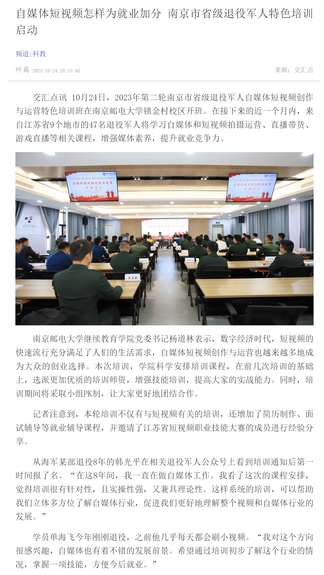 【新華日報客戶端】自媒體短視頻怎樣為就業加分 南京市省級退役軍人特色培訓啟動