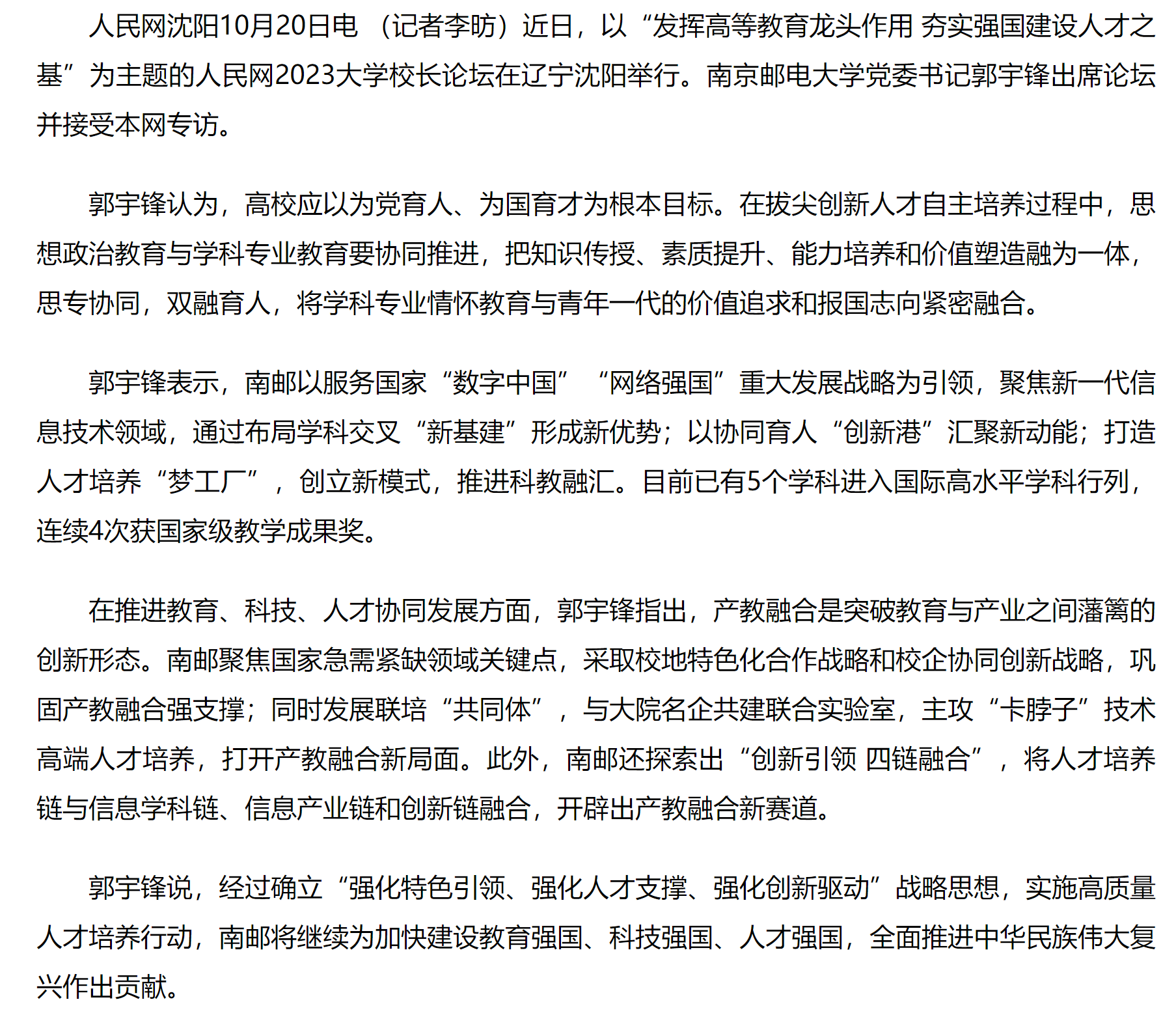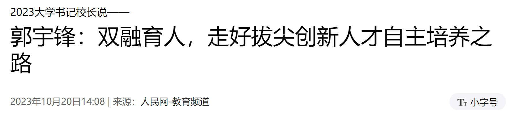 【人民網】郭宇鋒:雙融育人,走好拔尖創新人才自主培養之路
