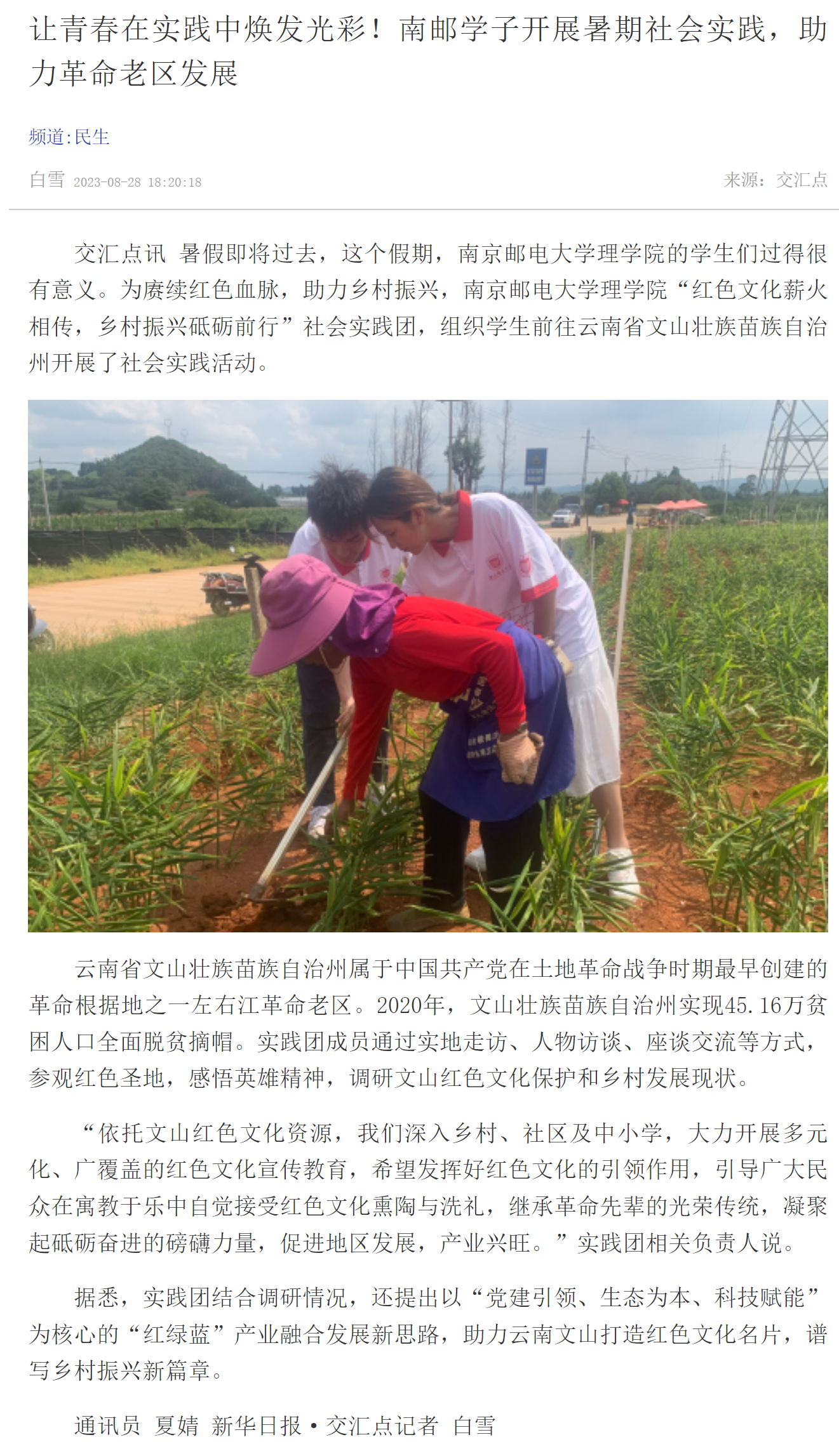 【新華日報客戶端】讓青春在實踐中煥發光彩!南郵學子開展暑期社會實踐,助力革命老區發展