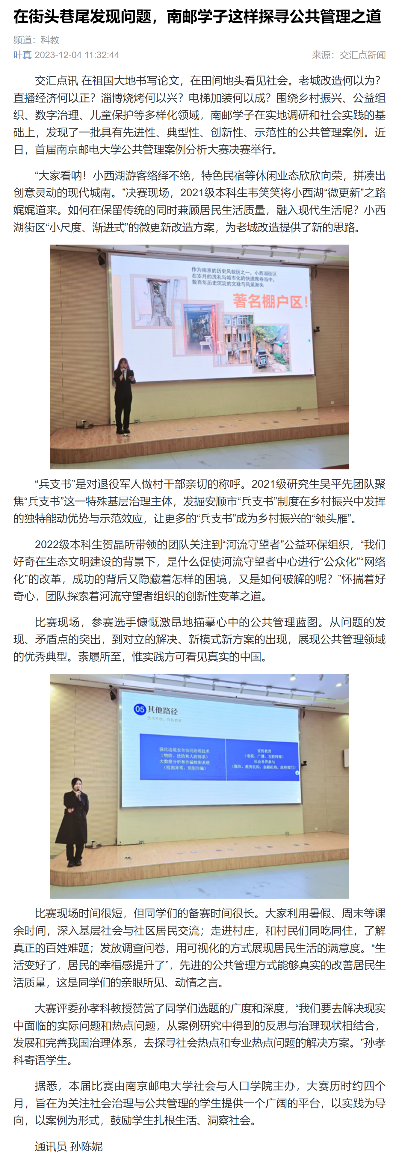 【新華日報客戶端】在街頭巷尾發(fā)現(xiàn)問題,南郵學(xué)子這樣探尋公共管理之道