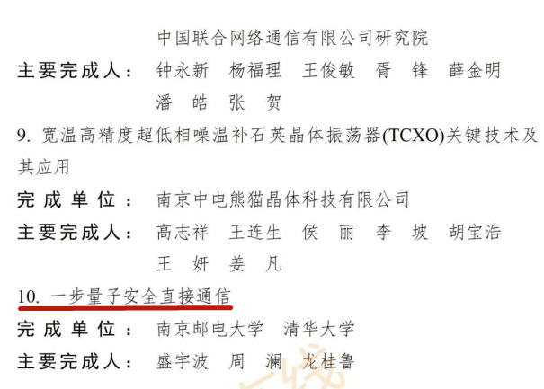 12月2日,2022年度江蘇省行業(yè)領(lǐng)域十大科技進(jìn)展、優(yōu)秀科技進(jìn)展項(xiàng)目公布,共70項(xiàng)成果入選十大科技進(jìn)展、78項(xiàng)成果入選優(yōu)秀科技進(jìn)展。我校電子與光學(xué)工程學(xué)院、柔性電子(未來技術(shù))學(xué)院盛宇波教授、理學(xué)院周瀾教授和清華大學(xué)物理系龍桂魯教授合作的“一步量子安全直接通信”項(xiàng)目入選電子信息領(lǐng)域優(yōu)秀科技進(jìn)展。項(xiàng)目論文發(fā)表在國內(nèi)權(quán)威期刊Science Bulletin上,并獲授權(quán)專利1項(xiàng)。
