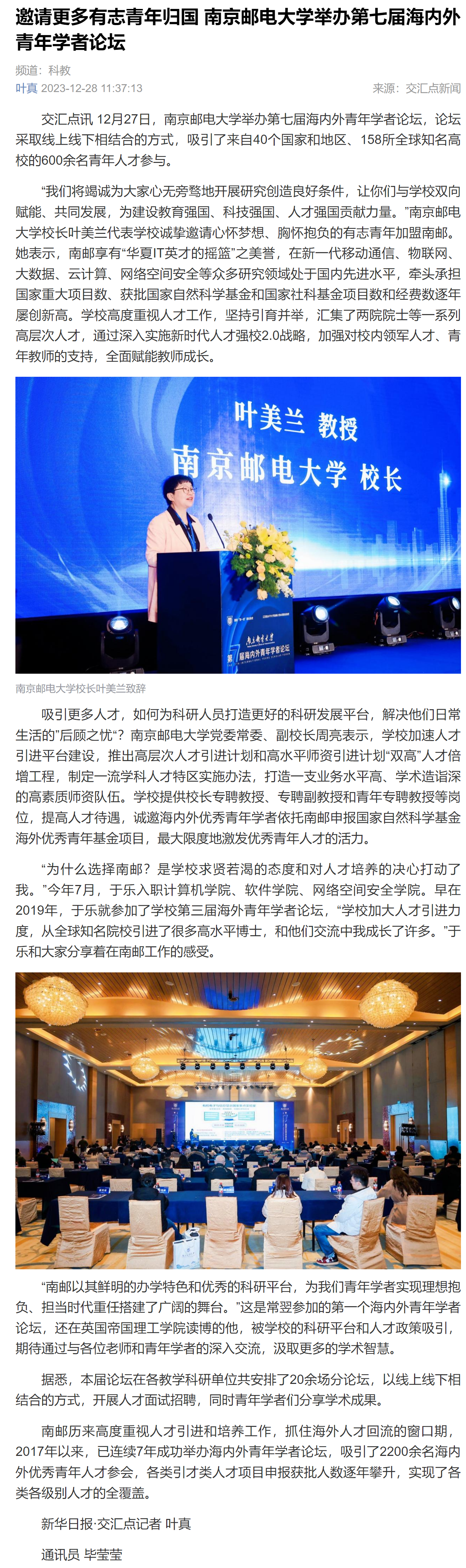 【新華日?qǐng)?bào)客戶端】邀請(qǐng)更多有志青年歸國(guó) 南京郵電大學(xué)舉辦第七屆海內(nèi)外青年學(xué)者論壇
