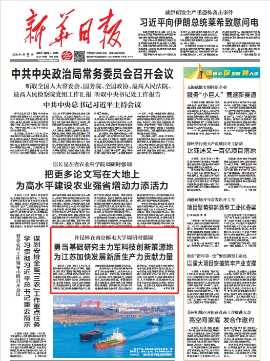 1月4日,省長許昆林來到南京郵電大學調研。他強調,要認真學習貫徹習近平總書記關于教育、科技、人才的重要論述和對江蘇工作重要講話重要指示精神,以一流學科建設為引領,弘揚特色優勢,深耕信息領域,走好做專做精、求實扎實的發展路子,勇當基礎研究主力軍、打造科技創新策源地,為江蘇加快發展新質生產力、推動高質量發展走在前列貢獻更大力量。