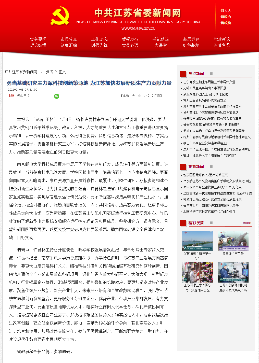 【中共江蘇省委新聞網(wǎng)】勇當基礎(chǔ)研究主力軍科技創(chuàng)新策源地 為江蘇加快發(fā)展新質(zhì)生產(chǎn)力貢獻力量