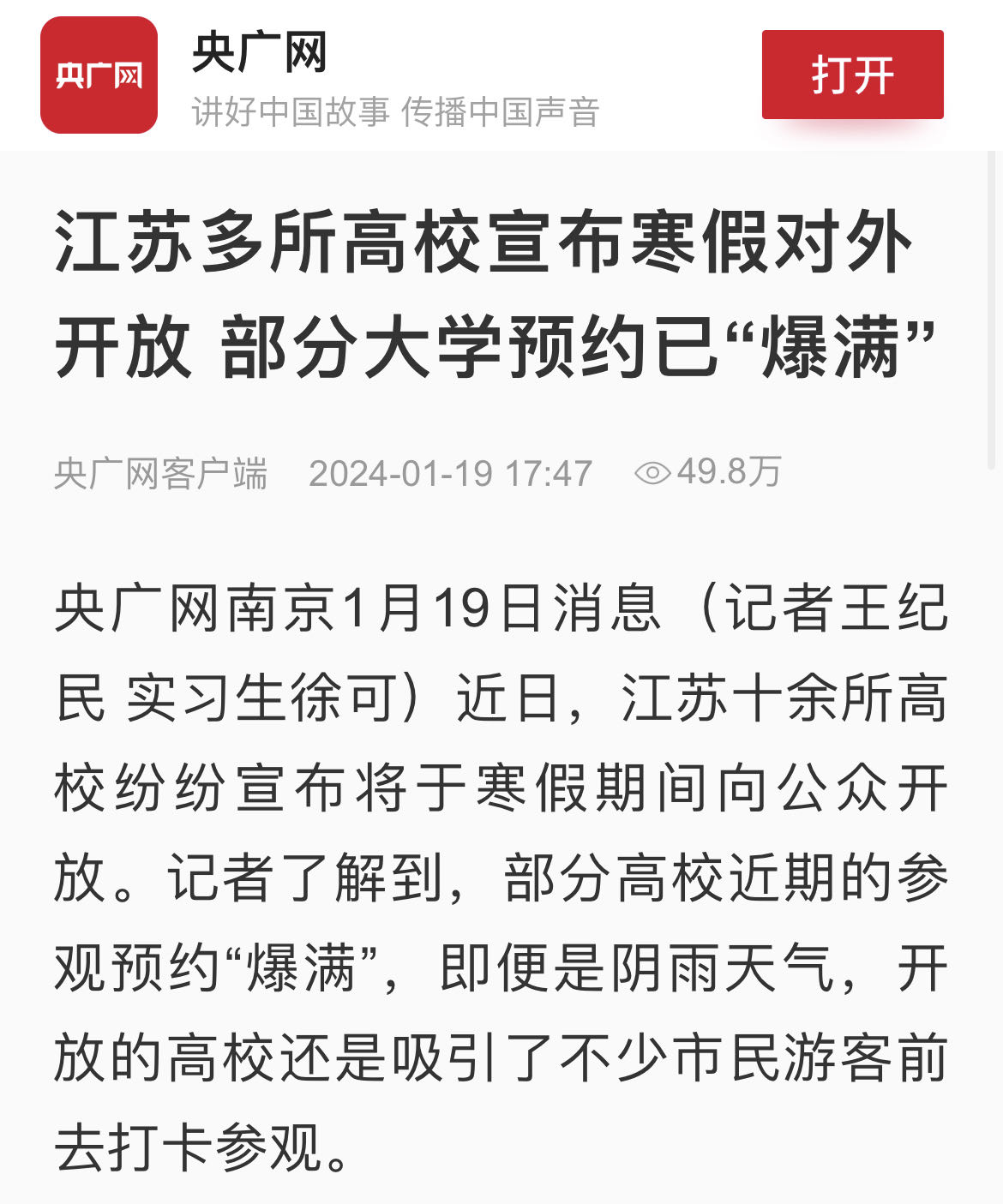 【央廣網】江蘇多所高校宣布寒假對外開放