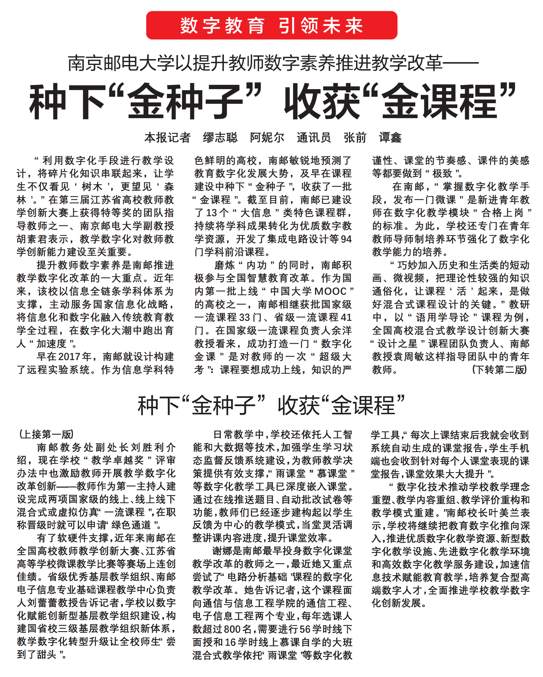 【中國教育報頭版】南京郵電大學以提升教師數字素養推進教學改革—— 種下“金種子”收獲“金課程”