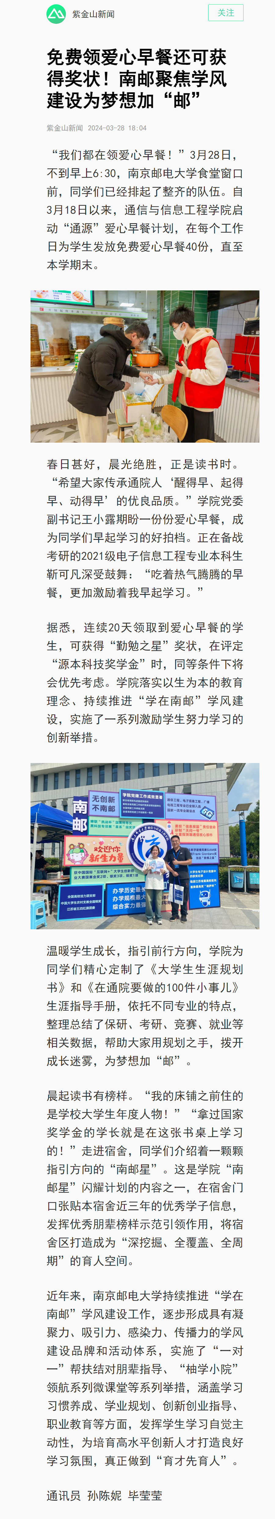 【南京日報客戶端】免費領愛心早餐還可獲得獎狀!南郵聚焦學風建設為夢想加“郵”